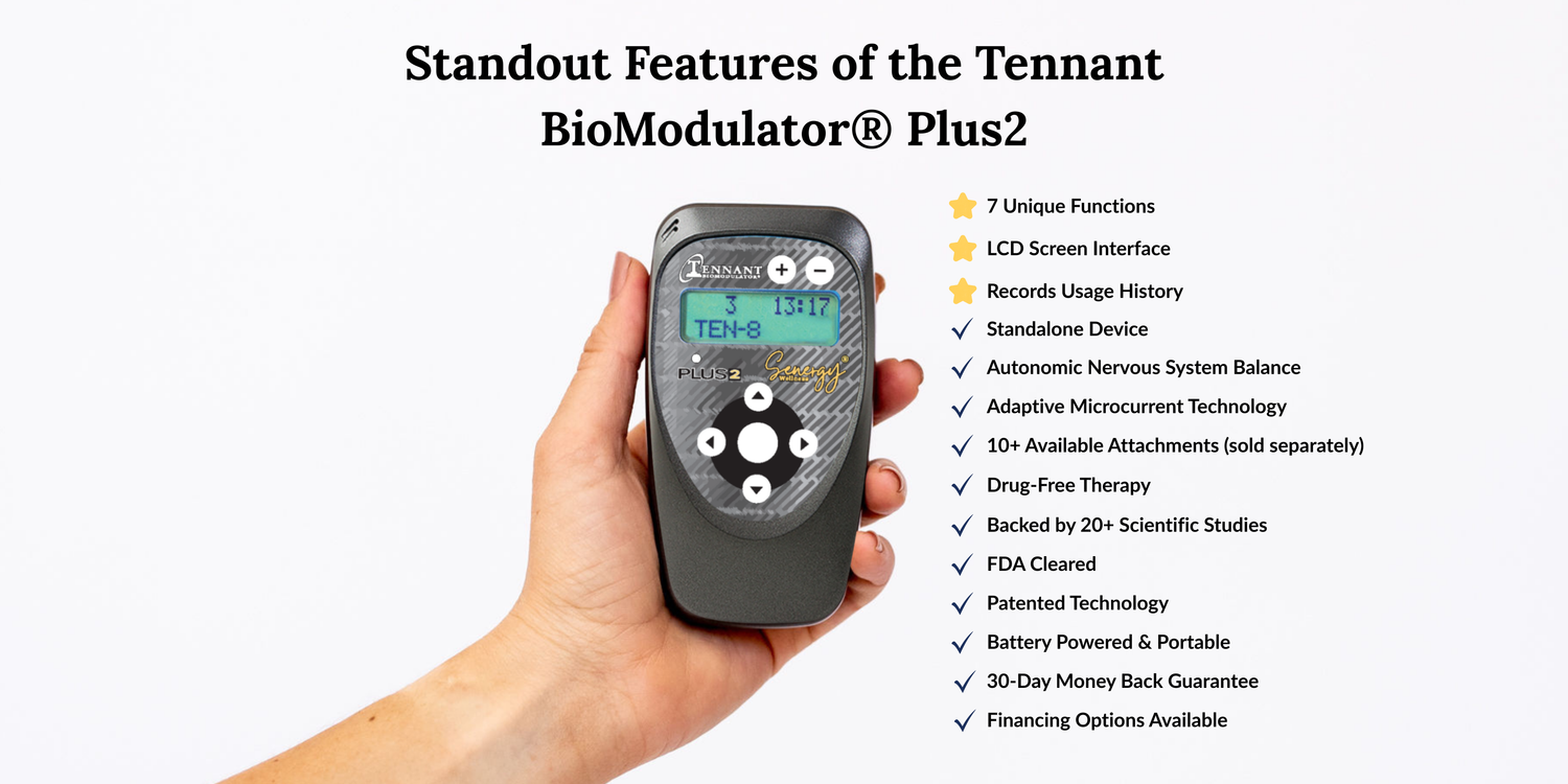 The Tennant BioModulator® Plus2 is an FDA-cleared Class II medical device that has been used in both clinical and home settings for nearly two decades. It complies with federal safety standards and has a history of being well-tolerated by a wide range of users. Whether used under practitioner guidance or as part of a home care regimen, the Tennant BioModulator® Plus2 offers a science-backed way to help manage pain while supporting the body’s inherent ability to maintain and restore function.
